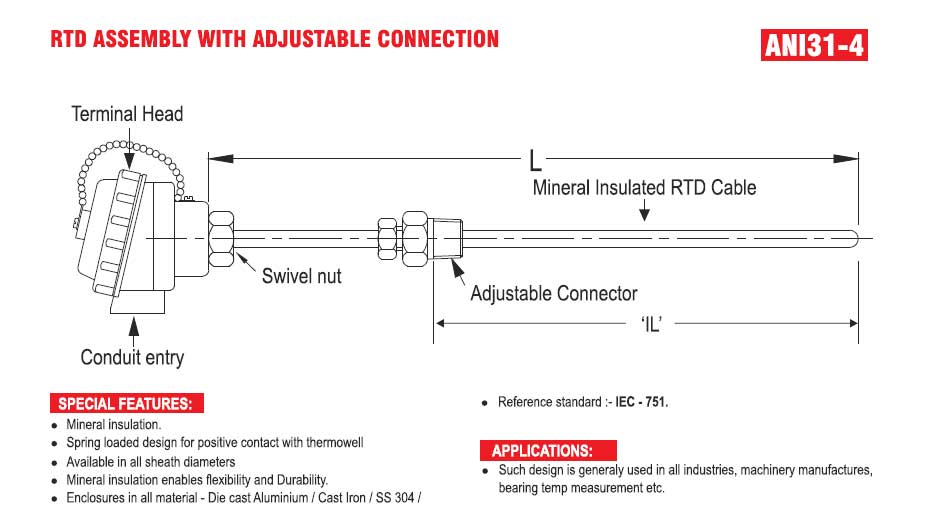 RTD ASSEMBLEY WITH ADJUSTABLE CONNECTOR