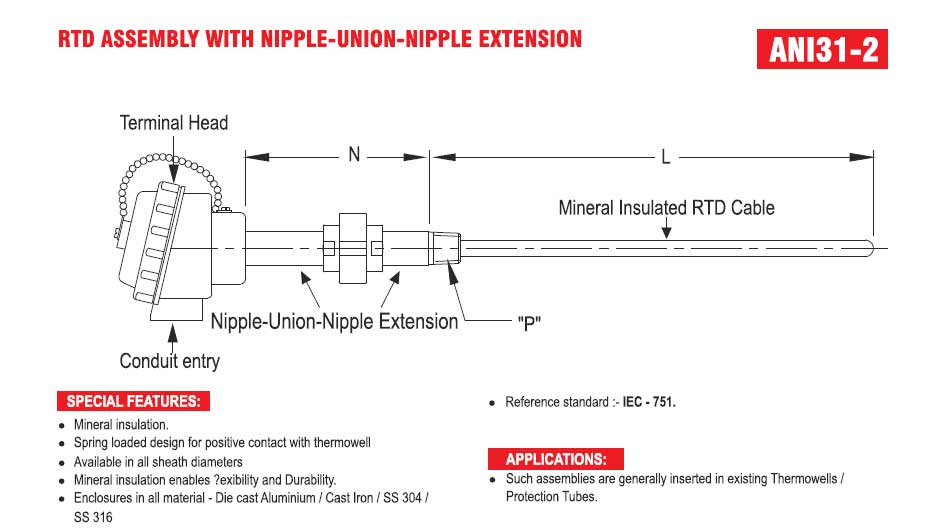 RTD ASSEMBLEY WITH NIPPLE UNION -NIPPLE EXTENSION