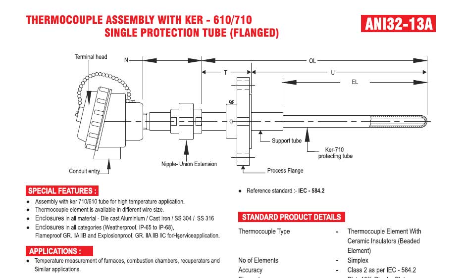 THERMOCOUPLE ASSEMBLEY WITH KER 610/170 SINGLE PROTECTION TUBE FLANGED