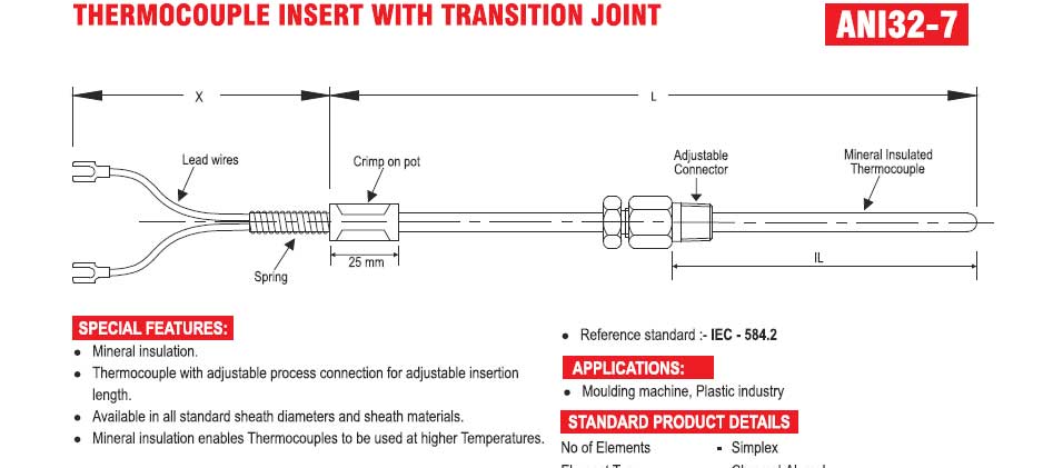 THERMOCOUPLE INSERT WITH TRANSITION JOINT